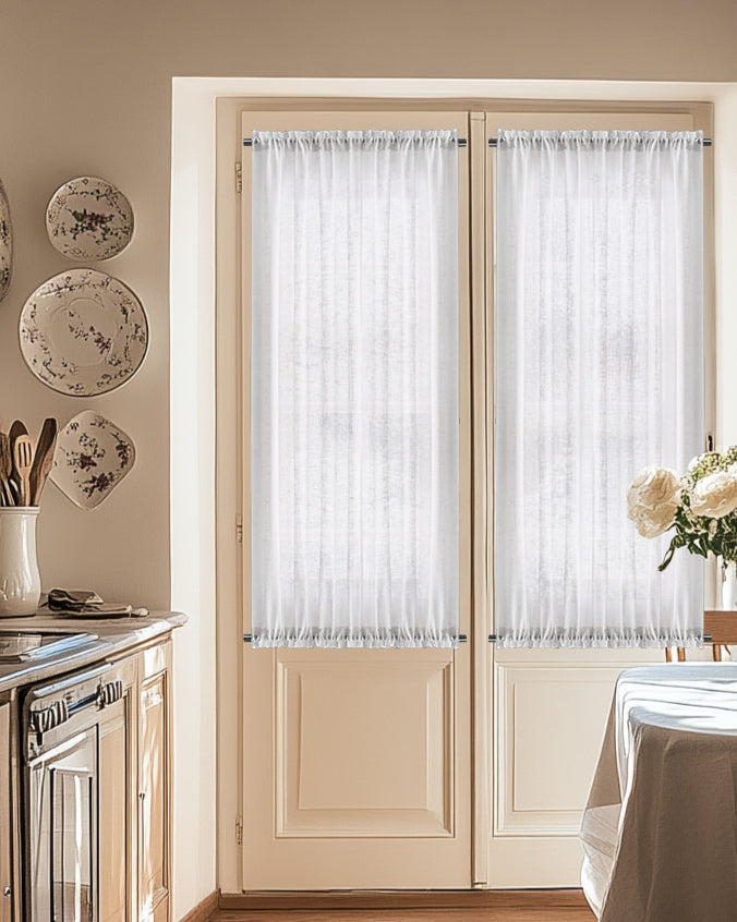 For smaller spaces, opt for lightweight fabrics like cotton or sheer linen to avoid overwhelming the room. Choose neutral or light colors to make the space feel larger and more airy. Shorter curtains that don’t touch the floor can also make a small space feel more open, while still adding a touch of coziness and style.