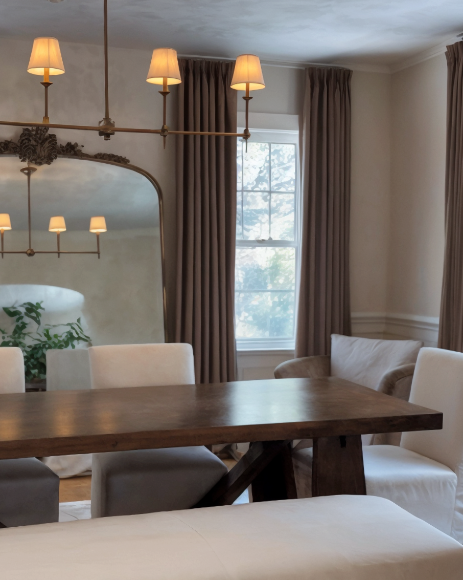 Custom drapery that brings comfort and festive glow to every corner.