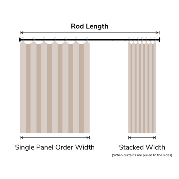 Our Stacked Width Calculator lets you see how much space your drapery will take when fully opened — or calculate your Single Panel Order Width based on the desired stacked width.