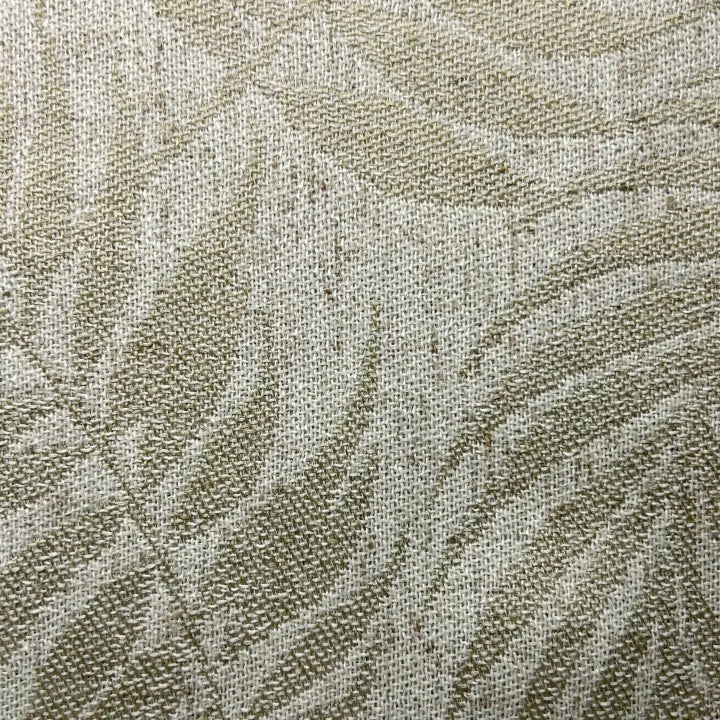 Lucan Linen, woven with 35% natural linen, brings an airy, breathable quality and the crisp texture unique to linen fibers. Its graceful leaf pattern is enhanced by tonal flecks and subtle irregular slubs, adding depth and dimension. With a slightly coarse, tactile handfeel, the fabric offers layered character—so your drapery feels textured and refined, never flat or one-note.
